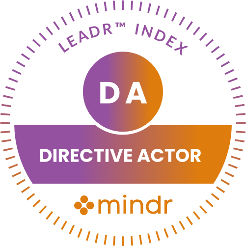 The earner of this badge has completed Mindr's proprietary LEADR™ Index assessment and has the profile of a Directive Actor. Directive Actors tend to be decisive leaders who drive impact by discerning how to motivate others to act and when to roll up their sleeves to execute.